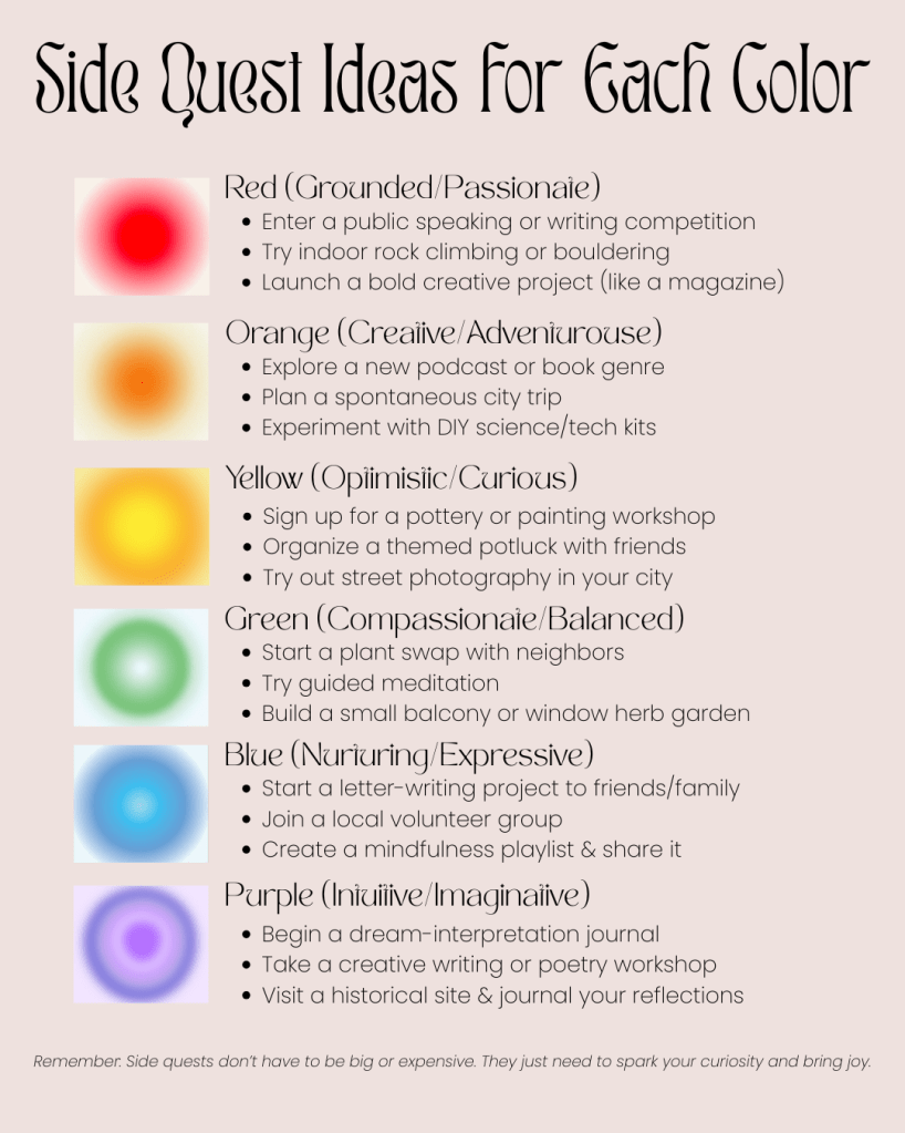And if you’re a visual learner, I’ve made a chart that matches side quest ideas to different personality vibes so you can find your perfect match.